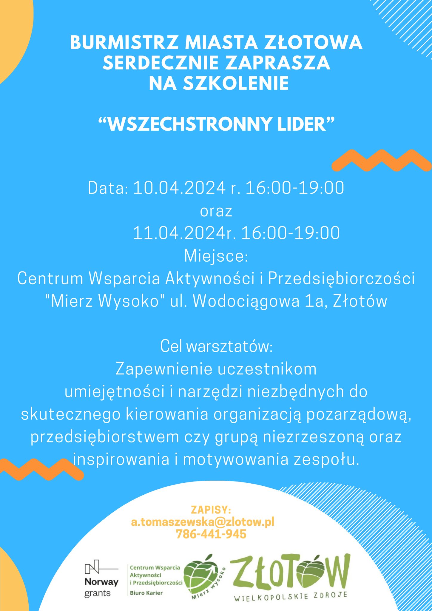 Zapraszamy na warsztaty "WSZECHSTRONNY LIDER", skierowane do wszystkich zainteresowanych zdobyciem wiedzy, umiejętności oraz doświadczenia niezbędnych do promowania postaw prospołecznych.